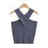 Ribbed tank top with a unique cross-back design. Perfect for casual wear or layering.
