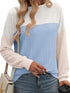 A pullover with a ribbed texture, featuring a colorblock design and a round neckline.