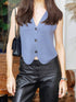 A ribbed knit vest featuring a V-neckline, button-front closures, and notched hem.