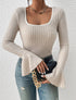 Ribbed top with a square neckline. Long sleeves with flared cuffs for added detail. Ideal for casual or semi-formal occasions.