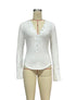 A ribbed Henley top with a v-neck and button details. Features a slim fit, perfect for layering or casual wear.