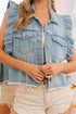 Denim vest with ruffle sleeves. Button-front with raw hem.