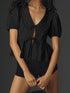 Ruffle collar blouse with a tie-front detail. Short sleeves and a peplum waist.
