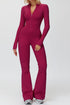 Effortlessly chic jumpsuit with a streamlined design. Features a convenient front zip for easy wear. Ideal for versatile styling and modern elegance.