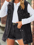 A sleeveless denim vest with a button-front closure and chest flap pockets.