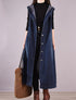 Sleeveless Button-Up Long Denim Vest
