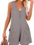 Casual romper with a button-up front and sleeveless design. Features large side pockets for practicality. A perfect one-piece for relaxed days.