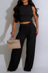 Two-piece lounge set with sleeveless top and wide-leg pants. Features a soft knit look with effortless appeal. Perfect for home or street wear.