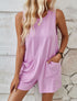 Sleeveless romper with side pockets and a relaxed fit. Easy-to-wear design, perfect for warm-weather outings.