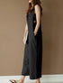 A wide-leg jumpsuit with sleeveless design, front button closures, and a relaxed fit.