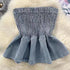 Smocked Denim Tube Top with Peplum Hem