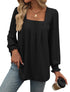Flowy blouse with a square neckline. Features gathered details and long sleeves. Perfect for casual or work outfits.