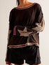 A patchwork pullover with large star-shaped patches on the sleeves and ribbed detailing at the hem and cuffs.