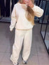 A comfortable two-piece loungewear set with a starry print, featuring a long sleeve top and wide-leg pants.