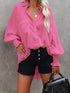 Button-up blouse with a relaxed silhouette. Long sleeves with smocked cuffs.