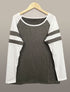 Casual baseball tee with striped sleeve details. Relaxed fit with contrast raglan sleeves. Great for laid-back looks.