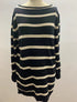 A striped long sleeve sweater with buttoned sleeves and a relaxed fit, offering a cozy casual style.