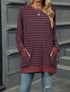 Loose fit tunic sweater with stripes. Side pockets add functionality. Perfect for relaxed styling.