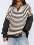 Striped Oversized Pullover with V-Neck