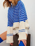 An oversized sweater featuring horizontal stripes, dropped shoulders, and a ribbed crew neck.