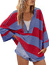 A striped pullover poncho with a relaxed fit and a deep V-neck. A stylish option for layering during cool weather.