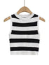 Knitted tank top with an allover striped pattern, round neckline, and cropped hem.