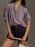 Striped V-Neck Puff Sleeve Blouse