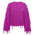 Knit sweater with textured fringe detailing. Features a relaxed fit for cozy comfort. Perfect for adding statement texture to any outfit.