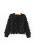 Open-front cardigan with a textured design. Sequin accents.