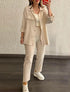 A two-piece lounge set with a textured finish, including a button-up top and matching pants. Perfect for laid-back comfort.