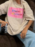 Oversized tee with a ticket print graphic. Ribbed neckline and relaxed fit.