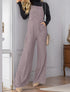 Fashionable denim jumpsuit with tie straps and wide legs. A trendy one-piece for a laid-back yet stylish vibe.