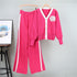 Two-piece lounge set with a striped design. Includes a cardigan and wide-leg pants. Comfortable and stylish for relaxed days.