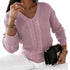 Relaxed sweater with a V-neck and cable knit detailing. Comfortable fit for casual or semi-formal outfits. Great for layering.