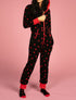 Valentine-themed heart print onesie with a front zip. Ideal for a cozy night in.