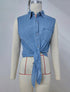 Tie-front cropped shirt with a washed finish. Adds a casual vibe to your wardrobe. Perfect for pairing with denim.