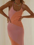A knit bodycon dress with a wave pattern, scoop neckline, and spaghetti straps.