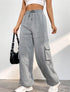 Wide-leg pants with cargo pockets and an elastic waistband. Great for a relaxed, street-style look.