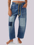 Wide-leg denim pants with distressed detailing and a relaxed fit, featuring front pockets and a drawstring waist.
