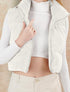 A sleeveless corduroy puffer vest featuring a zip-up front, high collar, and quilted padding for extra warmth.