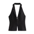Tailored halter vest with a sleek zip-up front. Fitted design for a modern and chic look. Perfect for layering over shirts or dresses.