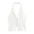 Tailored halter vest with a sleek zip-up front. Fitted design for a modern and chic look. Perfect for layering over shirts or dresses.